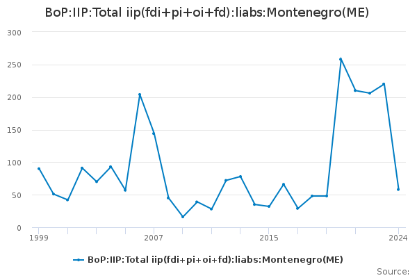 Download this time seriesBoP:IIP:Total iip(fdi+pi+oi+fd):liabs:Montenegro(ME)