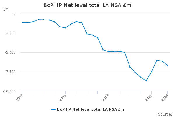 Download this time seriesBoP IIP Net level total LA NSA £m