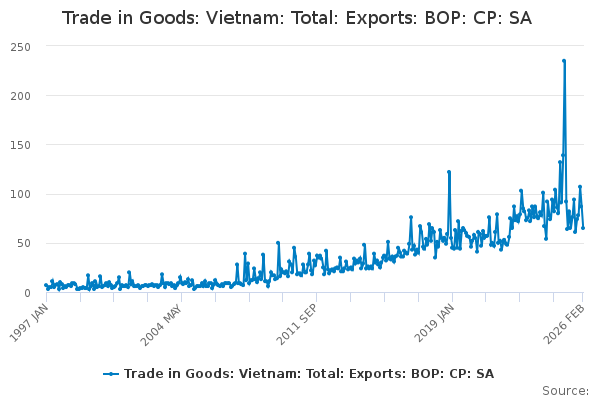 Download this time seriesTrade in Goods: Vietnam: Total: Exports: BOP: CP: SA