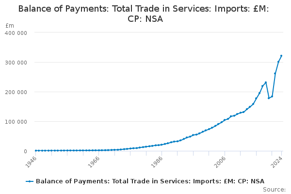 Download this time seriesBalance of Payments: Total Trade in Services: Imports: £M: CP: NSA