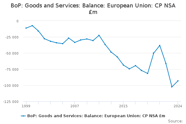 Download this time seriesBoP: Goods and Services: Balance: European Union: CP NSA £m