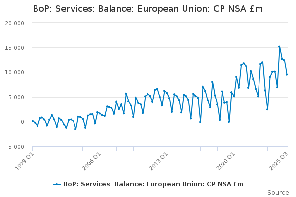 Download this time seriesBoP: Services: Balance: European Union: CP NSA £m
