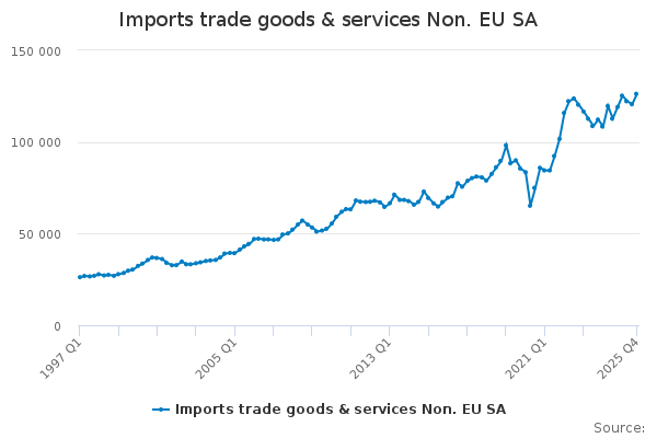We have corrected an error that meant that low level quarterly data within this output were incorrect for the period 1997-2019 for current price (CP) data with annual data unaffected. This does not impact on the total trade aggregate series and has no impact on total GDP. We apologise for any inconvenience caused.