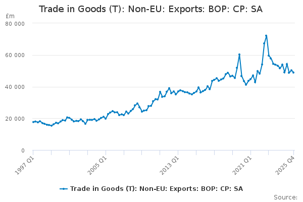 Download this time seriesTrade in Goods (T): Non-EU: Exports: BOP: CP: SA