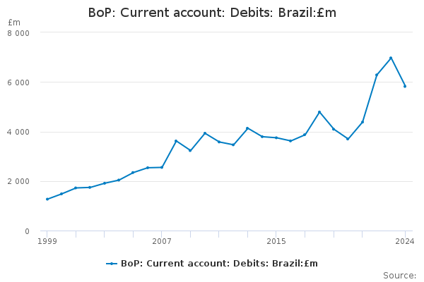 Download this time seriesBoP: Current account: Debits: Brazil:£m