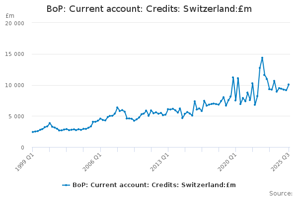 A minor error has been identified in Switzerland service exports. The error fed through to the below series and affects 2017 (quarters and annual) and Quarter 1 (Jan to Mar) 2018. The error was due to a processing issue and does not affect any other outputs within the release. All affected series have now been corrected. D38G in table B6B, Switzerland services exports, seasonally adjusted, D38F in table B6B, Switzerland goods and services exports, seasonally adjusted, D3N5 in table B6B, Switzerland total credits, seasonally adjusted, D39A in table B6B_3, Switzerland services balances, seasonally adjusted, D399 in table B6B_3, Switzerland goods and services balances, seasonally adjusted, D3N7 in table B6B_3, Switzerland current account balances, seasonally adjusted, FYVU in table B6C, Switzerland services exports, not seasonally adjusted, LGIL in table B6C, Switzerland goods and services exports, not seasonally adjusted, LEOY in table B6C, Switzerland total credits, not seasonally adjusted, GGRO in table B6C_3, Switzerland services balances, not seasonally adjusted, LGMV in table B6C_3, Switzerland goods and services balances, not seasonally adjusted, LEPA in table B6C_3, Switzerland current account balances, not seasonally adjusted