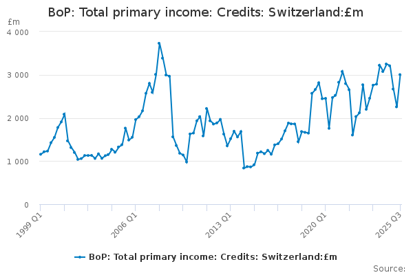 Download this time seriesBoP: Total primary income: Credits: Switzerland:£m