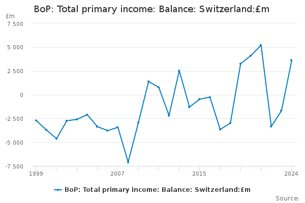 Download this time seriesBoP: Total primary income: Balance: Switzerland:£m