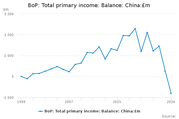 Download this time seriesBoP: Total primary income: Balance: China:£m