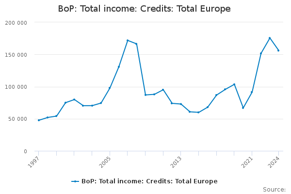 Download this time seriesBoP: Total income: Credits: Total Europe