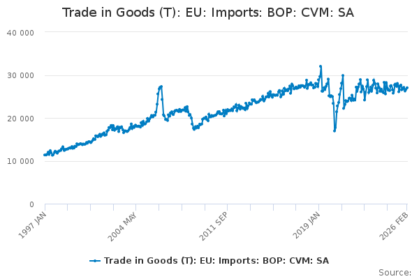 Download this time seriesTrade in Goods (T): EU: Imports: BOP: CVM: SA