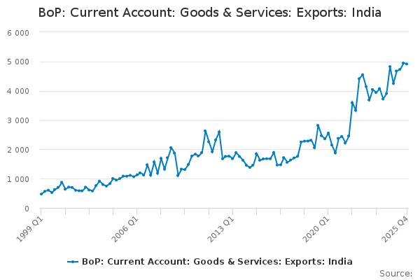 Download this time seriesBoP: Current Account: Goods & Services: Exports: India