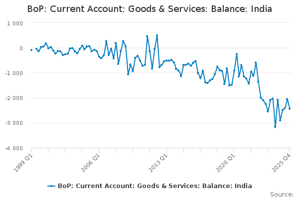 Download this time seriesBoP: Current Account: Goods & Services: Balance: India