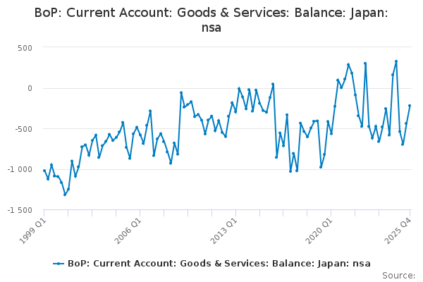 Download this time seriesBoP: Current Account: Goods & Services: Balance: Japan: nsa
