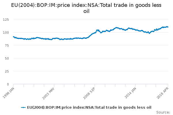 Download this time seriesEU(2004):BOP:IM:price index:NSA:Total trade in goods less oil