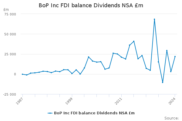 Download this time seriesBoP Inc FDI balance Dividends NSA £m