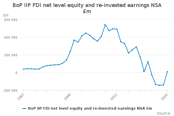 Download this time seriesBoP IIP FDI net level equity and re-invested earnings NSA £m