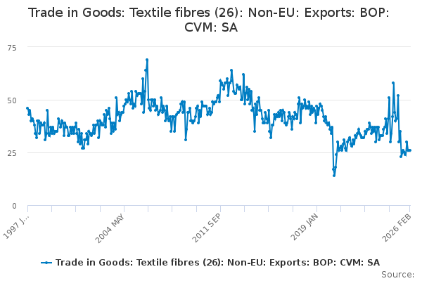 Download this time seriesTrade in Goods: Textile fibres (26): Non-EU: Exports: BOP: CVM: SA