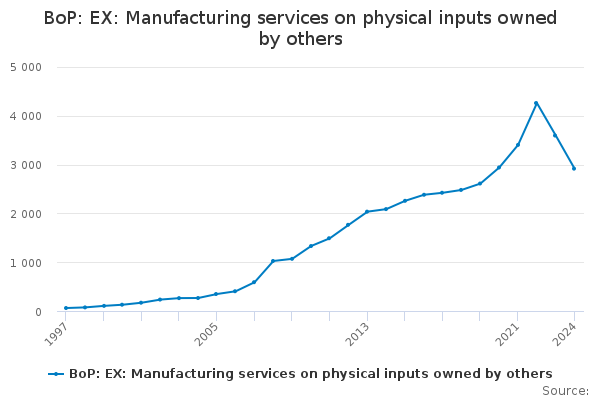 Download this time seriesBoP: EX: Manufacturing services on physical inputs owned by others