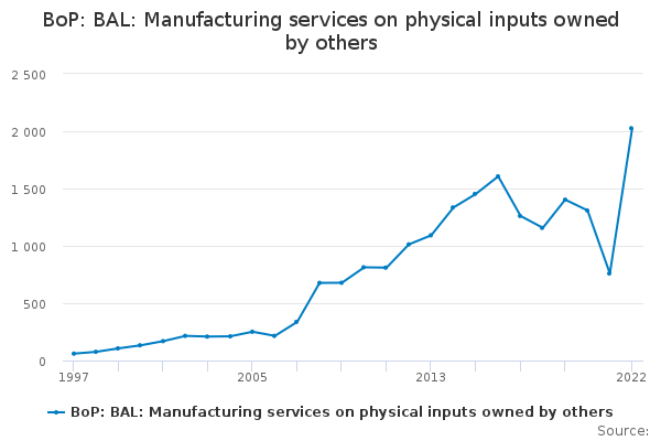 Download this time seriesBoP: BAL: Manufacturing services on physical inputs owned by others
