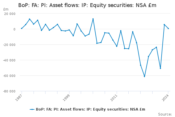 Download this time seriesBoP: FA: PI: Asset flows: IP: Equity securities: NSA £m