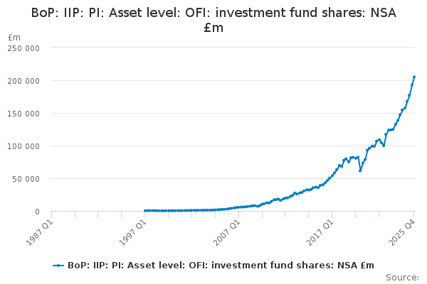 Download this time seriesBoP: IIP: PI: Asset level: OFI: investment fund shares: NSA £m