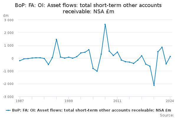 Download this time seriesBoP: FA: OI: Asset flows: total short-term other accounts receivable: NSA £m