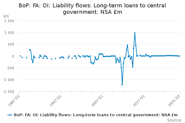 Download this time seriesBoP: FA: OI: Liability flows: Long-term loans to central government: NSA £m