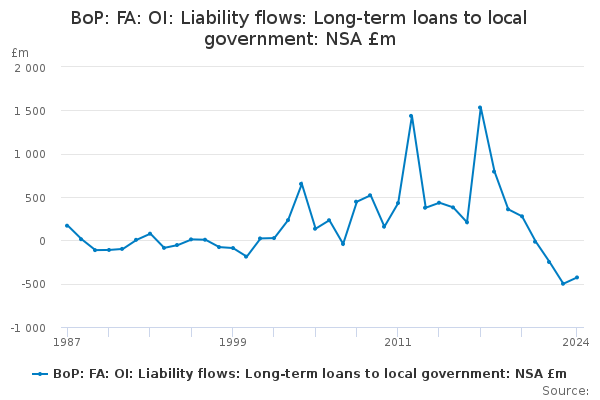 Download this time seriesBoP: FA: OI: Liability flows: Long-term loans to local government: NSA £m