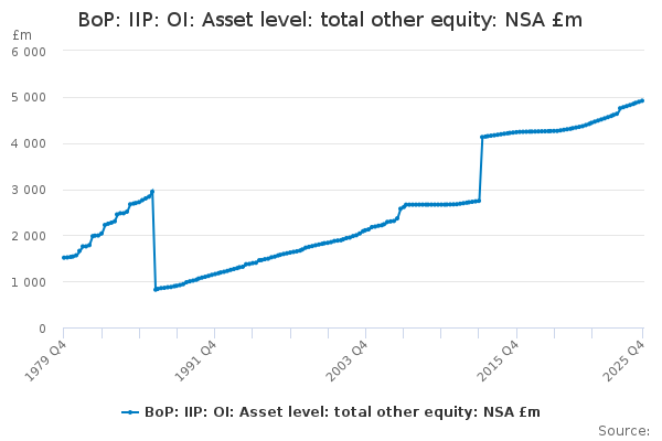 Download this time seriesBoP: IIP: OI: Asset level: total other equity: NSA £m