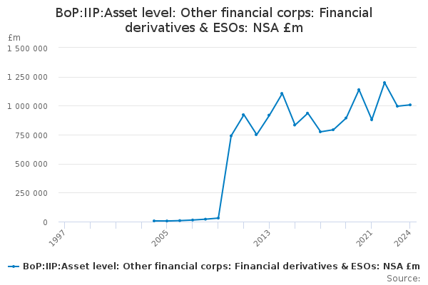 Download this time seriesBoP:IIP:Asset level: Other financial corps: Financial derivatives & ESOs: NSA £m