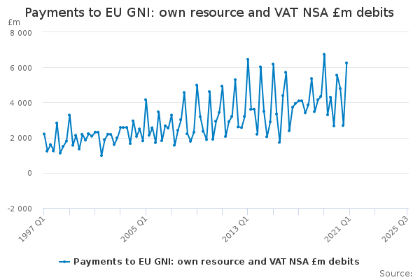 Download this time seriesPayments to EU GNI: own resource and VAT NSA £m debits