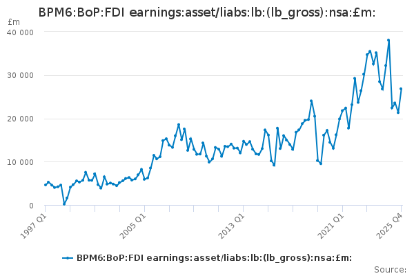 Download this time seriesBPM6:BoP:FDI earnings:asset/liabs:lb:(lb_gross):nsa:£m: