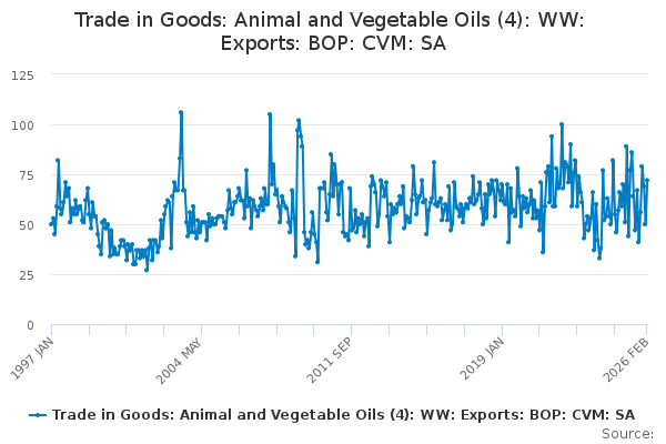 Download this time seriesTrade in Goods: Animal and Vegetable Oils (4): WW: Exports: BOP: CVM: SA