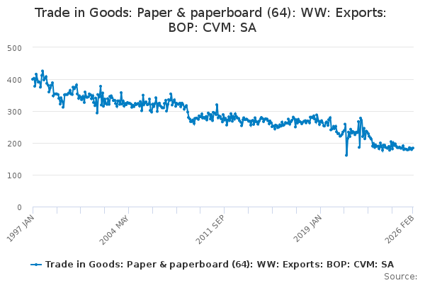 Download this time seriesTrade in Goods: Paper & paperboard (64): WW: Exports: BOP: CVM: SA