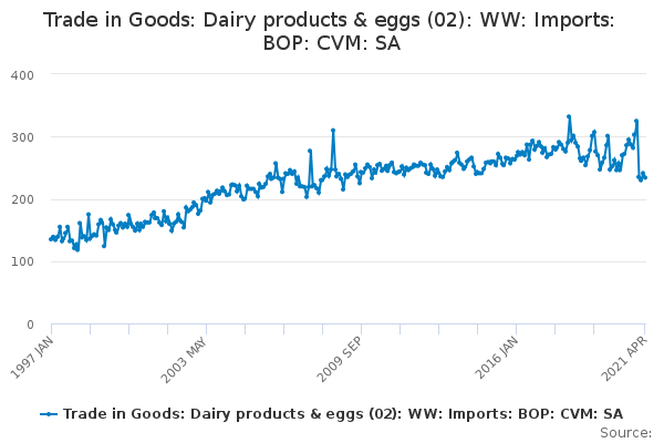 Download this time seriesTrade in Goods: Dairy products & eggs (02): WW: Imports: BOP: CVM: SA