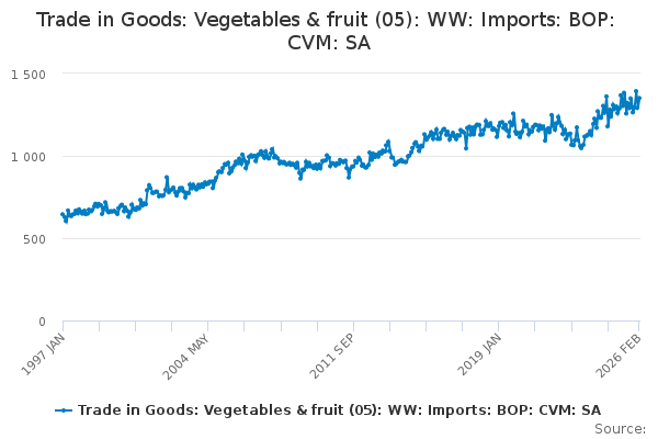 Download this time seriesTrade in Goods: Vegetables & fruit (05): WW: Imports: BOP: CVM: SA