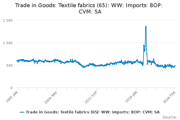 Download this time seriesTrade in Goods: Textile fabrics (65): WW: Imports: BOP: CVM: SA