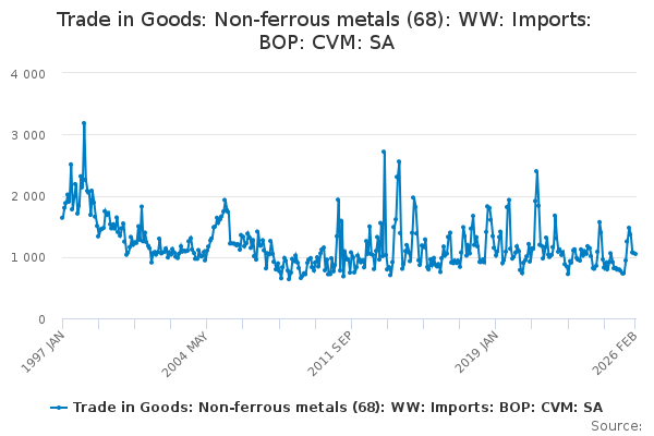 Download this time seriesTrade in Goods: Non-ferrous metals (68): WW: Imports: BOP: CVM: SA