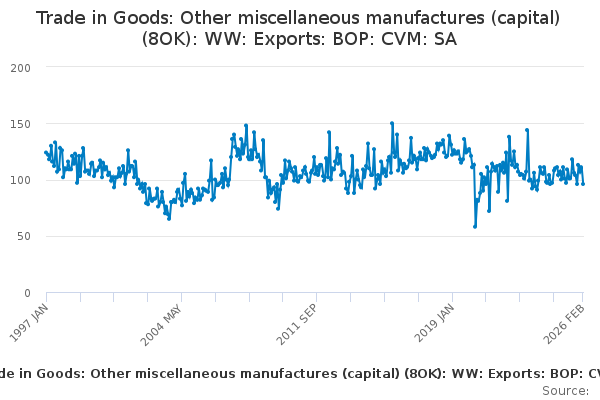 Download this time seriesTrade in Goods: Other miscellaneous manufactures (capital) (8OK): WW: Exports: BOP: CVM: SA