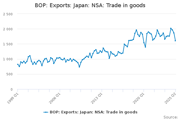 Download this time seriesBOP: Exports: Japan: NSA: Trade in goods