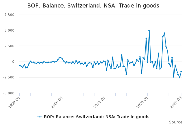 Download this time seriesBOP: Balance: Switzerland: NSA: Trade in goods