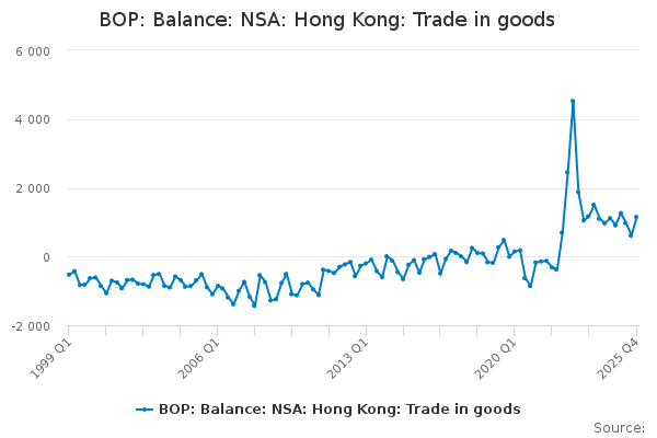 Download this time seriesBOP: Balance: NSA: Hong Kong: Trade in goods
