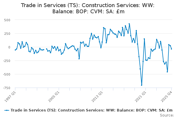 Download this time seriesTrade in Services (TS): Construction Services: WW: Balance: BOP: CVM: SA: £m