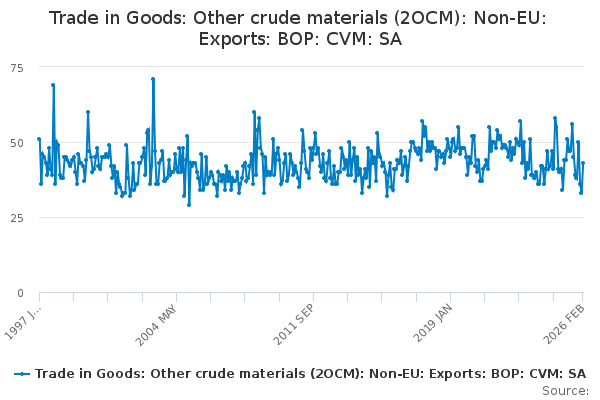 Download this time seriesTrade in Goods: Other crude materials (2OCM): Non-EU: Exports: BOP: CVM: SA