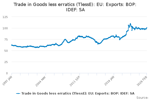 Download this time seriesTrade in Goods less erratics (TlessE): EU: Exports: BOP: IDEF: SA