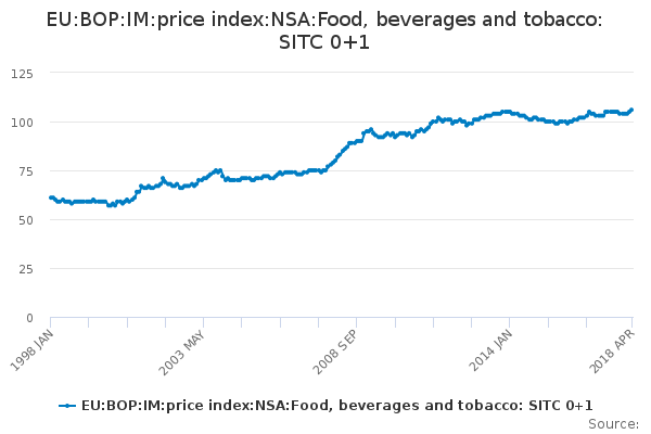 Download this time seriesEU:BOP:IM:price index:NSA:Food, beverages and tobacco: SITC 0+1