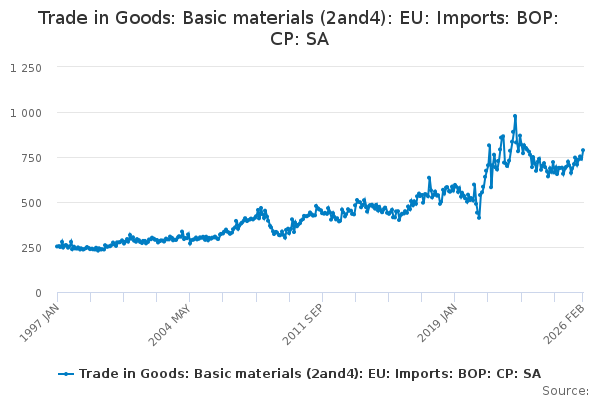Download this time seriesTrade in Goods: Basic materials (2and4): EU: Imports: BOP: CP: SA