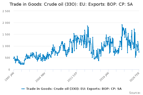 Download this time seriesTrade in Goods: Crude oil (33O): EU: Exports: BOP: CP: SA