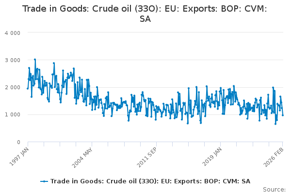 Download this time seriesTrade in Goods: Crude oil (33O): EU: Exports: BOP: CVM: SA